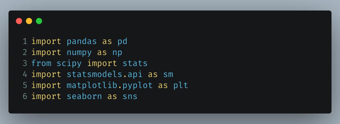 These libraries will help us load the data, perform statistical tests, visualize results, and much more. Now that we have our data and tools ready, let’s start with some basic hypothesis testing.