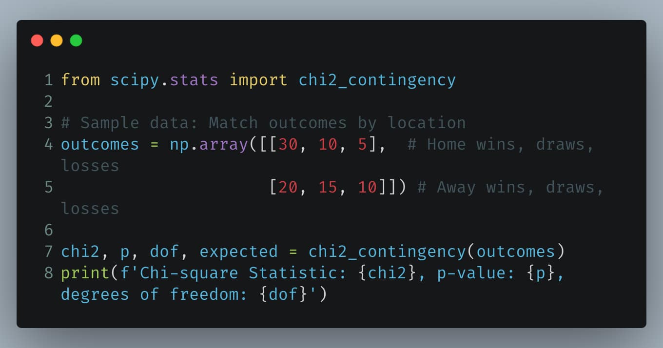 Python Example: Chi-Square Test for Match Outcomes