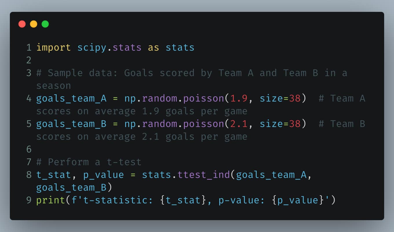 Python Example: Using t-Test to Compare Goals Scored