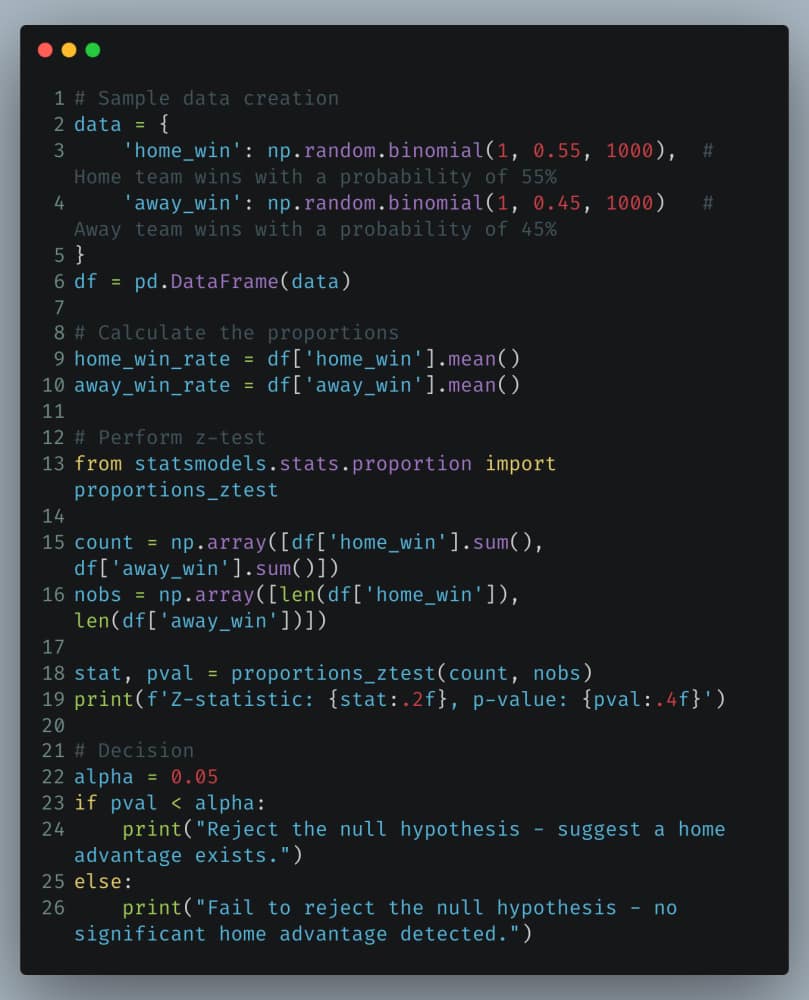 Python Implementation: Testing the Home Advantage