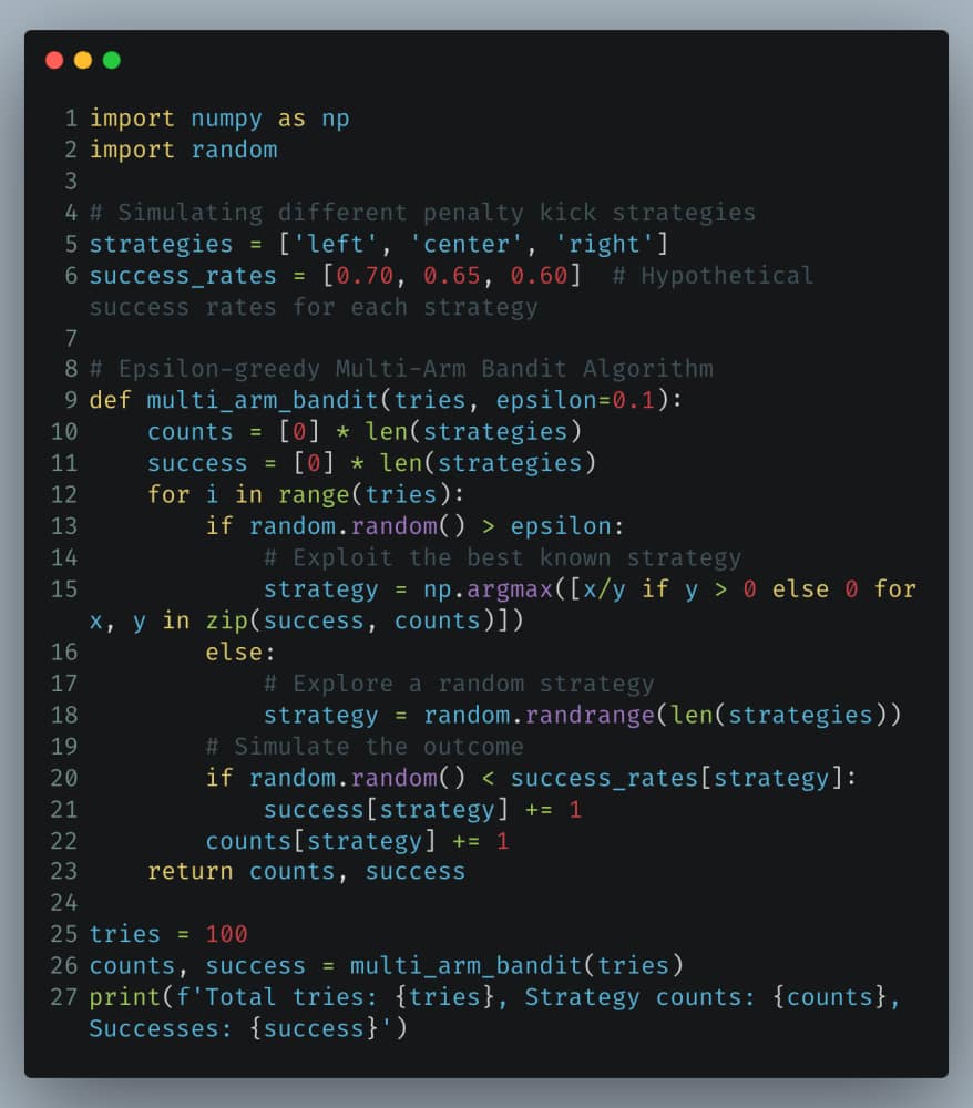 Python Example: Implementing a Multi-Arm Bandit for Penalty Kick Strategy